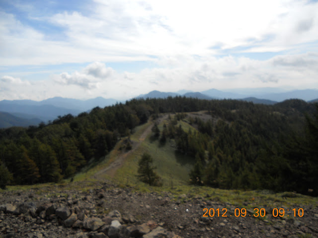 右手に、下山のコースと思われる東の稜線が見えてきた。
